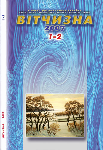 Наталка ПОКЛАД. Рубікон. Поезії Світлана Iщенко. Ванкуверська зима. Поезії Наталя Bолошко. Щастя – у піжмурки. Поезії Валентин Чемерис. Це я, званий іще Чемерисом. Роман. Закінчення Мар’ян Красуцький. Дві новели Дмитро Mіщенко. Тітка Фаня з соціалізму. Історія нашого сучасника Юрій КРАСНОЩОК. Лідера знайти і знищити. Політичний детектив. Продовження ХХ сторіччя української поезії. Антологія «Вітчизни». Володимир Козирський, Василь Шендеровський. Олександр Смакула – фізик і гуманіст Є ЩОСЬ ВИЩЕ ПОЗА ТЕБЕ САМОГО – ЦЕ УКРАЇНСЬКЕ МИСТЕЦТВО Віктор КОРОБКА. «Недаремно я люблю наше минуле». Поема «Торніке Еріставі» Акакія Церетелі у перекладі Любомира Дмитерка Петро ФЕДОТЮК. Етюди про мову Юрій ЯРМИШ. Журналіст, науковець, педагог «Зенітка» Наш виставковий стенд | |||||||||||||||||||||||||||||