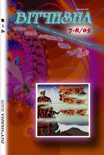 ЛЮТИЙ ГРИГОРІЙ. Немає смерті тим, хто вірно любить... Поезії МАТІЙКО ОЛЕКСАНДР. З перевалу видно обрій... Поезії МІЩЕНКО ДМИТРО. І станеш ти шукать її сліди... Роман. Закінчення ФЕДОТЮК ПЕТРО. Оповідання КРАСНОЩОК ЮРІЙ. Полювання на красунь, або Агент у спідниці. Документальний детектив XX сторіччя української поезії. Антологія «Вітчизни». КИЇВСЬКИЙ МЕРИДІАН СКОРОХОД ГРИГОРІЙ, ХОМЕНКО АНАТОЛІЙ. Незабутнє. До 100-річчя революційних подій 1905 - 1907 років БОЙКО ВЛАДИСЛАВ. Бюрократичні танці на пороховій бочці ХОМЕНКО ВАЛЕНТИН. Реванш історії ЗЬОЛА МАР'ЯНА. Кобзарське мистецтво в грамзапису АРТЕМЧУК ІГОР. З когорти майстрів. До 100-річчя від дня народження Феофана Скляра ГОЛОБОРОДЬКО ЯРОСЛАВ. Дніпрова Чайка: файли долі та творчості. Літературознавче есе БАРАН ЄВГЕН. Жіноча версія містичного постмодернізму НЕЖИВИЙ ОЛЕКСІЙ. Микиті Чернявському - 85 років «Зенітка» Наш виставковий стенд | |||||||||||||||||||||||||||||
